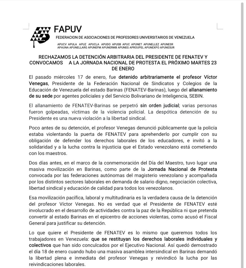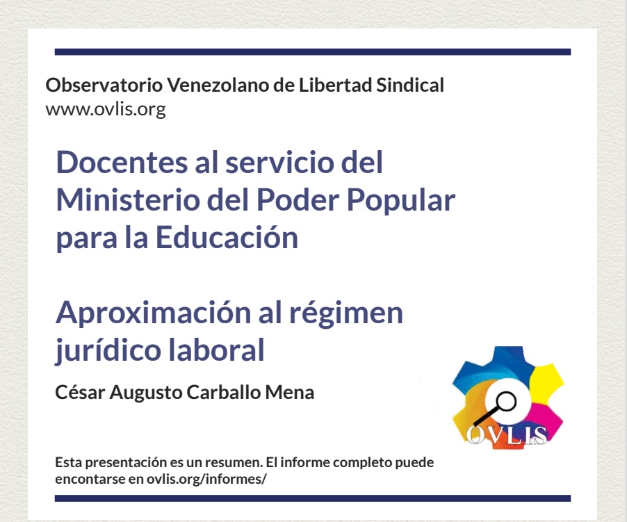 El deterioro de condiciones laborales de los docentes refleja una sistemática violación al derecho humano a la educación. Para tratar este tema el observatorio Venezolano de Libertad Sindical (OVLIS) convocó una rueda de prensa virtual vía zoom el miércoles 20 de octubre de 2021, con la participación de: